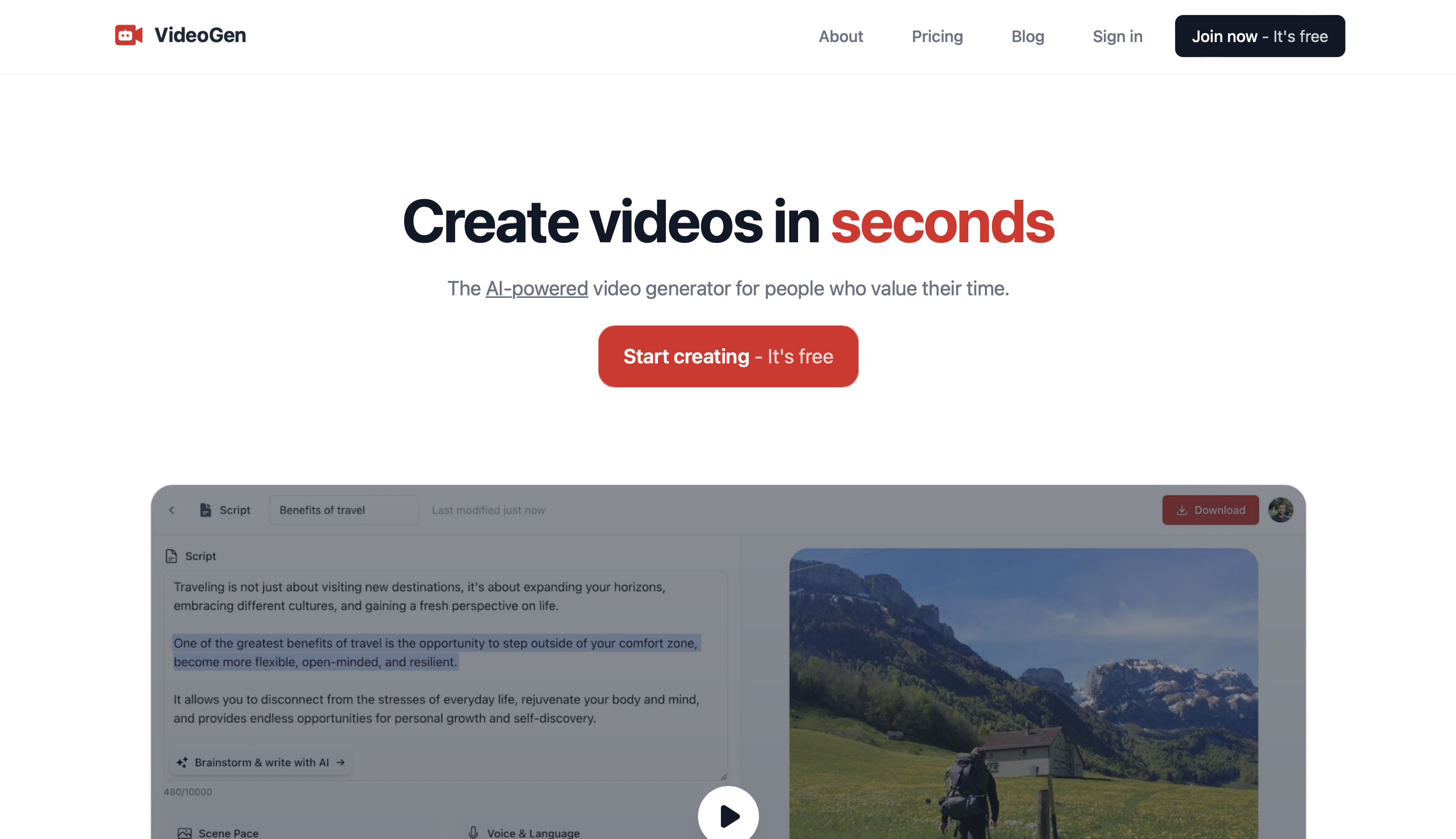 In definitiva, VideoGen semplifica il processo di creazione dei video riducendo la quantità di tempo necessaria per l'editing, lasciandoti libero di concentrarti sulla creazione di contenuti originali.